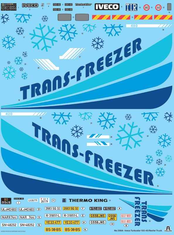 Model trucku ke slepení. Velikost: 1:24; 43 cm.Turbostar byl pro Iveco důležitým obchodním úspěchem. Díky své robustnosti, spolehlivosti a výkonu si zajistil významné postavení na evropském trhu nákladních vozidel a stal se koncem 80. let nejrozšířenějším průmyslovým vozidlem v Itálii. Byl vyráběn v mnoha verzích a konfiguracích, aby vyhovoval přesným a specifickým potřebám uživatelských společností. Velmi časté – zejména pro potřeby logistiky potravin – byly verze s izolovanými a chlazenými buňkami. Konfigurace vozidla a robustní zadní náprava se dvěma koly také nabízely dobrou nosnost a vynikající rovnováhu mezi velikostí a přepravovaným objemem nákladu.