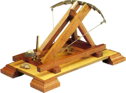 Charakteristika:Stavebnica modelu Rímskeho katapultu v mierke 1:17. Model je maketou vrhacej zbrane v podobe dvojitej kuše z 15. a 16. storočia. Túto kušu s dostrelom cez 200 metrov, možno považovať za predchodcu palných zbraní. Konštrukcia sa skladá z vopred narezaných drevených dielov a kovových liatych ozdôb. Modely historických zbraní Mantua Všetky modely historických zbraní Mantua sú vyrobené z kvalitných tvrdých drevín a sú doplnené kovovými súčasťami, napríklad mosadzným kovaním. Drevo je rezané laserom pre presnú montáž. Manuál je vybavený kompletnými ilustráciami. Sortiment historických modelov zbraní Mantua obsahuje delá, hmoždíre, katapulty, bojové vozy a mnoho ďalších, tu si vyberie naozaj každý. Stavebná obtiažnosť 1 Ide o stavebnice pre začiatočníkov lodných modelárov, ktoré bývajú vybavené hotovými dielmi trupu a minimom súčastí. Napriek tomu, že ide o model pre začiatočníkov, je potrebné mať na pamäti, že sa predpokladá určitá manuálna zručnosť staviteľa a schopnosť riešiť stavebné problémy. Návod určuje postup stavby, ale nemôže obsiahnuť technológiu spracovania materiálov, spôsob lepenia, farbenia, brúsenia či lakovania. Ide o klasické modelárske postupy, ktoré si každý vykonáva podľa svojich možností a zvyklostí. Model nemá prehnané detaily, je jednoduchší, preto výrazne menej pracný a časovo náročný, vďaka jednoduchšiemu stavebnému postupu by ho mal zostaviť priemerne zručný modelár alebo deti v modelárskych krúžkoch. Obal s fotografiou hotového modelu Štýlová krabica s fotografiou hotového modelu je vkusne a kvalitne graficky vyvedená a obsahuje názov a mierku modelu. Čo nájdete v balení Po otvorení viečka krabice nájdete drevené diely modelu z preglejky, lišty, drobné súčasti v plastových sáčkoch a manuál. Návod na zostavenie Set obsahuje kompletnú obrázkovú dokumentáciu s postupom stavby, jednotlivé kroky sú starostlivo zobrazené. Diely v stavebnom pláne sú číslované podľa zoznamu. Ítalský výrobca Mantua Model je už desiatky rokov významným výrobcom stavebníc modelov lodí. Vďaka svojim veľkým a bohato vybaveným stavebnicám historických modelov lodí, ako je Sovereign of the Seas, San Felipe alebo Royal Caroline, stanovil Mantua Model vysoké štandardy kvality a ako prvý zaviedol technológiu rezania laserom do modelárskeho priemyslu. Známí ítalskí návrhári navrhli pre Mantua Model široký sortiment známych a klasických modelov lodí, ktoré sa stali nepostrádateľnou súčasťou modelárskeho sveta statických makiet.Obsah balenia:Balenie obsahuje laserom vyrezávané drevené diely, kovové odliatky, obrázkový návod na stavbu.
