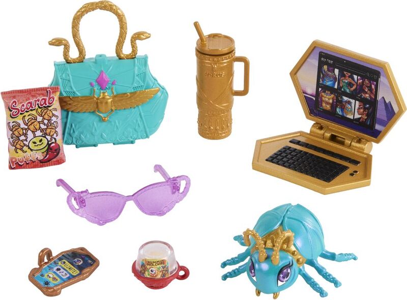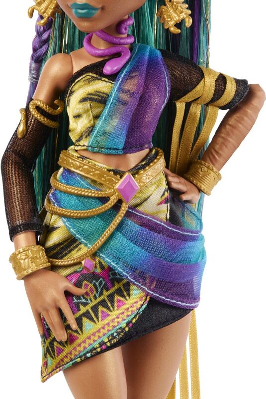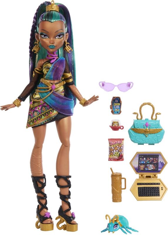 Táto bábika z Monster High prichádza so 7 desivo štýlovými doplnkami a tiež so svojim maznáčikom – egyptským skarabom menom Lavish. Deti od 4 rokov budú nadšené, že si môžu pridať nádherne desivú Neferu De Nile do svojej zbierky Monster High!