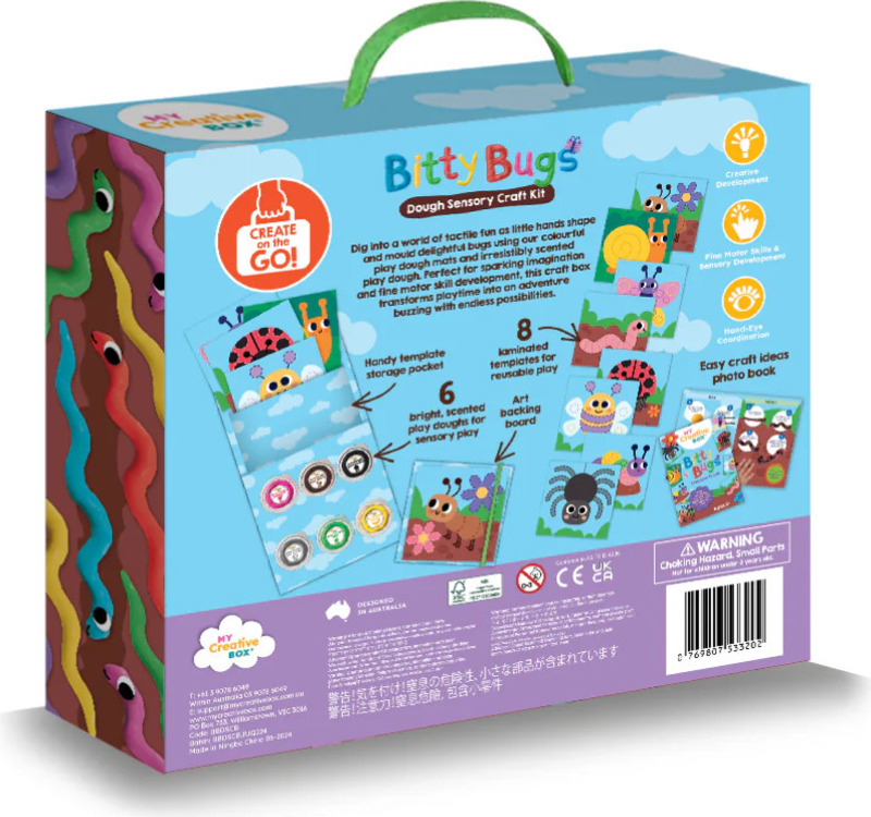 Naša pýcha, navrhnutá a ilustrovaná v Austrálii, je tento produkt hviezdou kolekcie „Sensory Crafts“ – ideálna cestovná aktivita pre deti. Kreativita, pohodlie, zábava a učenie v jednom. Prenosné, bezneporiadkové a tvorivé aktivity, ktoré podnecujú detskú predstavivosť, neboli nikdy jednoduchšie ako s My Creative Box.