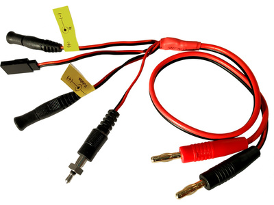 Nabíjací kábel s banánmi 4 mm a výstupnými konektormi pre koncovku žeravenia, serva a vysielača.