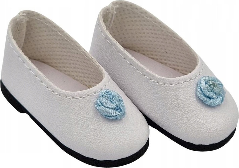 Biele balerínky s modrou ozdobou -rozkošné topánočky pre bábiku o veľkosti 32 cm