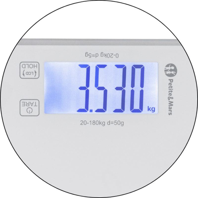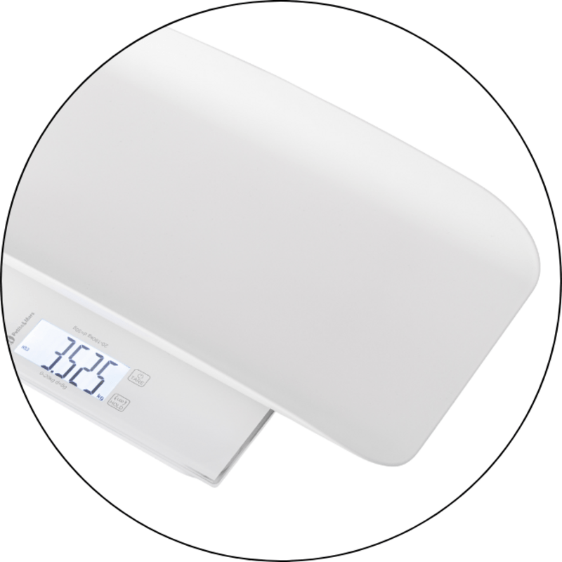 Na váženie najmenších slúži odnímateľná plastová vanička, ktorá poskytuje bábätku dostatok priestoru aj stability. Váha ponúka meranie v jednotkách kg/lb/oz, funkciu HOLD (automatickú aj manuálnu) pre stabilné zobrazenie hodnoty a funkciu TARE. S maximálnou nosnosťou až 180 kg a minimalistickým dizajnom prirodzene zapadne do každej domácnosti.