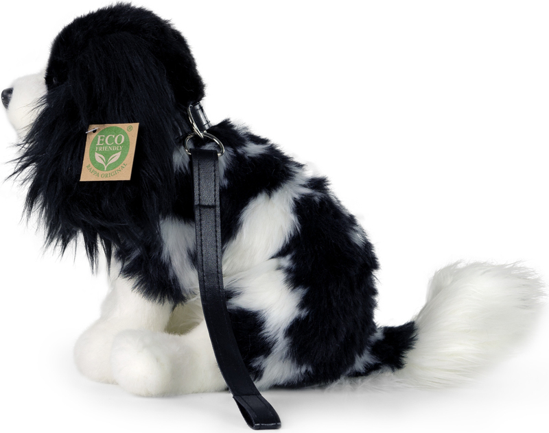 Plyšový pes cavalier veľkosti 27 cm je vyrobený z exkluzívného, veľmi kvalitného plyšu.Súčasťou je koženkové vodítko.