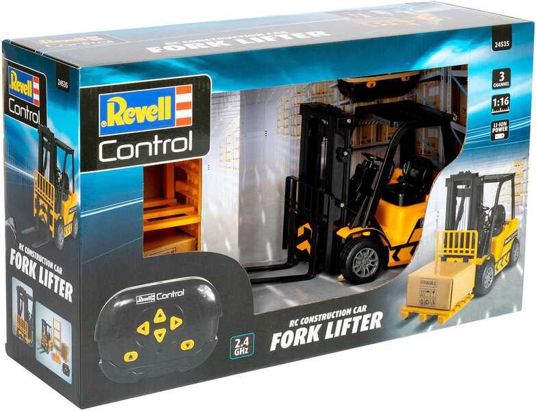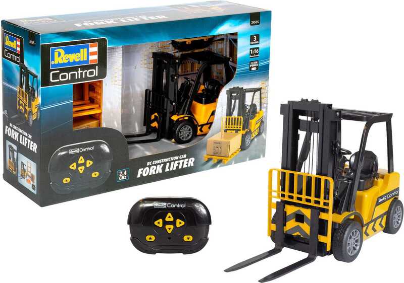 Model pracovního stroje na dálkové ovládání. Velikost: 39,5 cm.RC vysokozdvižný vozík od Revell Control vám dává příležitost pracovat a hrát si jako skutečný profesionál. Díky svému realistickému designu a vysoce detailním dílům je tento vysokozdvižný vozík absolutním vrcholem pro všechny nadšence pro stavbu modelů.