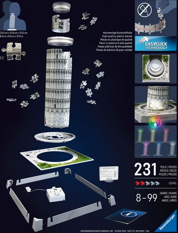 Ravensburger Iconics: Šikmá veža v Pise (Nočná edícia)