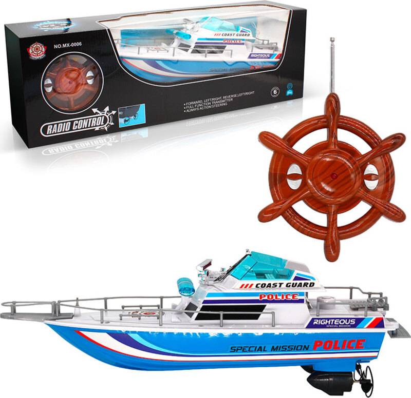 • Rc loď na dálkové ovládání s radiovým signálem a akumulátorovou baaterii, délka nabíjení 3h, výdrž 20-30 min, dosah ovladače 40m, max rychlost 15 km/h