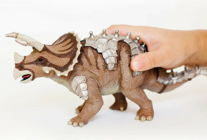 Fantasy Triceratops s pancierom a posilnenou obrannou výzbrojou. Deti môžu rozvíjať hru a príbehy s týmto robustným dinosaurím bojovníkom.