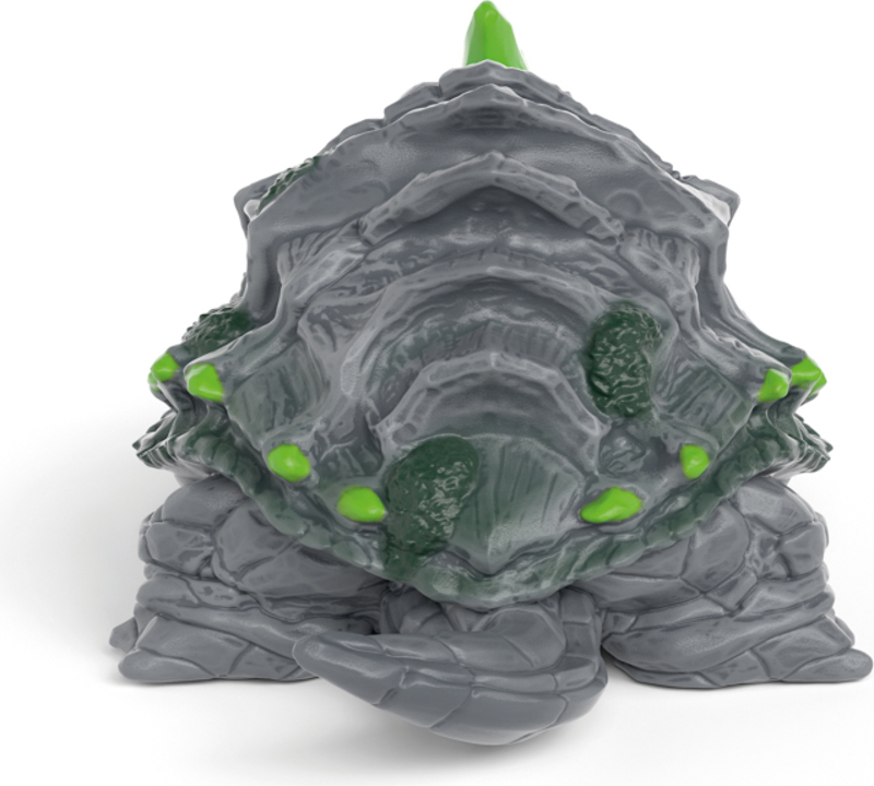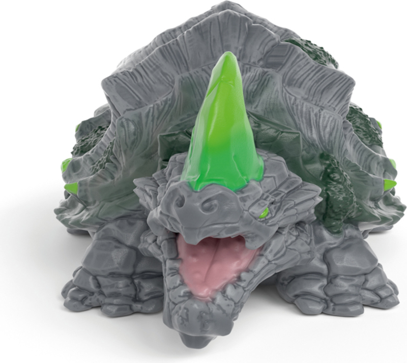 Zelené oči kamenné korytnačky vyzerajú naozaj zle. Kamenná korytnačka je už od pradávna jednou z najstarších obyvateľiek ELDRADOR®.Súbojom sa radšej vyhýba a väčšinou žije v jednej z mnohých jaskýň kamenného sveta. Pozná ich ako svoje topánky. Nenechajte sa však zmiasť: Svojím jasne zeleným rohom na hlave ohrozí každého, kto sa jej postaví do cesty. A uhryznúť môže tiež! So svojim silným kamenným pancierom je neporaziteľná. Najlepšie bude nechať ju v pokoji a osamote.