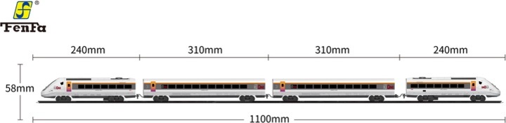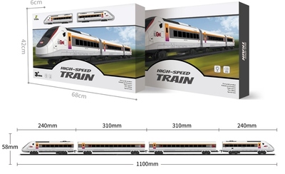 Súprava detskej vysokorýchlostnej železnice obsahuje 2 lokomotívy, 1 auto, 12 oblúkových a 6 rovných koľajníc a príslušenstvo (2 stromčeky, 1 plošina). Koľajnice môžu byť usporiadané v rôznych konfiguráciách.
