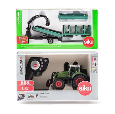 LIMITOVANÁ EDÍCIA - Siku Control - RC traktor Fendt 939 s ovládačom (6880) + zelený príves Oehler (2896). Kvalitný kovový traktor Fendt 939 s diaľkovým ovládačom. Nové a vylepšené ovládanie uľahčuje presné riadenie a manévrovanie. S týmto modelom možno použiť veľa doplnkov s radu SIKU Farmer 1:32. Výrobok má 2 servo-motory.Existujúce rádiové komponenty využívajúce vlnovú dĺžku 2,4 GHz. Stabilné a vysoko kvalitné traktory vyrobené z tlakovo liateho kovu a plastu sú ľahko ovládateľné s novo vyvinutým modulom rádiového ovládania. Svetlo vpredu a vzadu je počas prevádzky trvale zapnuté. V pohotovostnom režime, tj. Po zapnutí modelu a pred pripojením k rádiovému riadiacemu modulu blikajúca kontrolka signalizuje, že model je pripravený na spustenie.