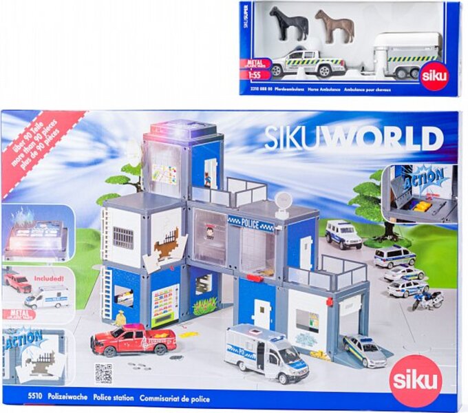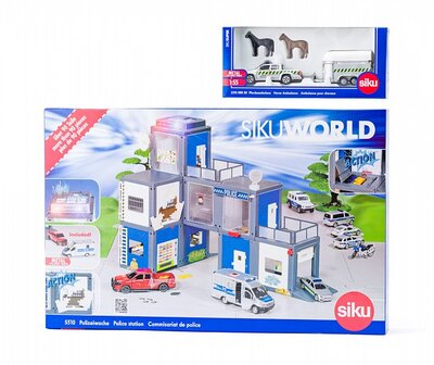 SIKU World - policajná stanica a auto na prepravu koní