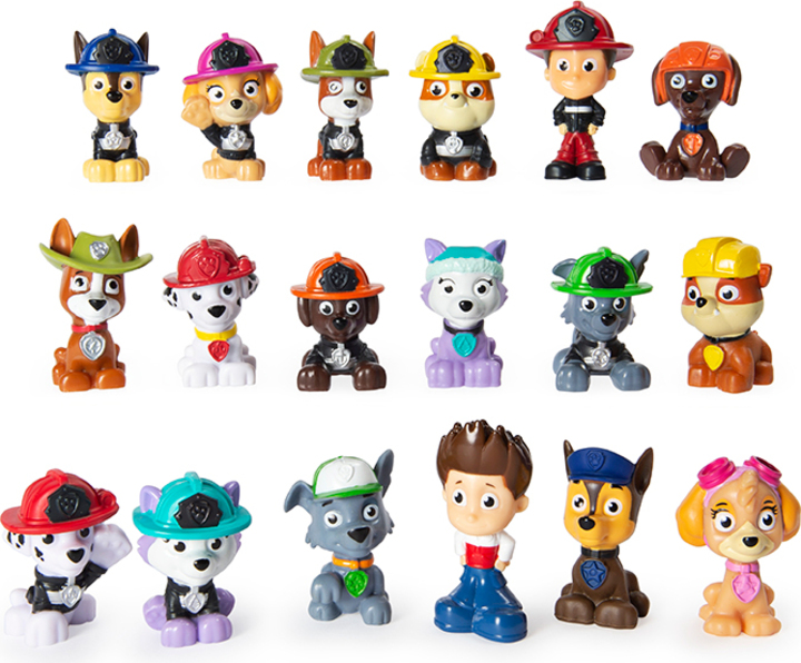 Autodráha Carrera FIRST 3,5 m dlhá s autami zo série Labková patrola, pre deti od 3 rokov, na batérie, obsahuje napájací diel s interaktívnymi hrami, zvukmi a svetlami, rovinky, zákruty, vrtule pre viac zábavy pri jazde, ovládače a dekorácie.