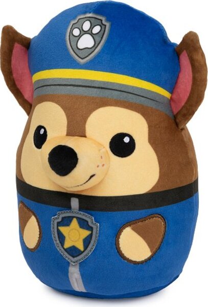 Paw Patrol Plyšák a vankúšik Chase. Odvážne šteňatá z Paw Patrol v podobe roztomilých plyšákov sú pripravené zachrániť situáciu.Plyšák má na sebe svoju typickú tematickú uniformu a na tvári úsmev od ucha k uchu. Výška: 20 cm.