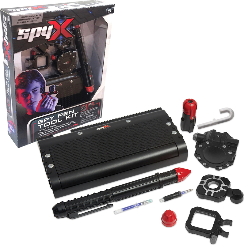 SpyX Špiónske pero je kompletná sada pre nočné operácie, ktorá poskytuje mladým agentom všetko potrebné pre tajné misie. Táto multifunkčná výbava obsahuje 6 špionážnych nástrojov v elegantnom puzdre, ktoré sa ľahko zmestí do vrecka alebo batohu.