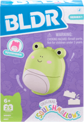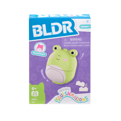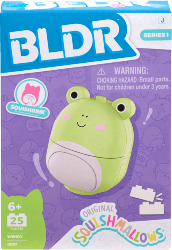 Táto BLDR sada obsahuje 25 dielikov na stavbu obľúbenej postavičky Squishmallows – žaby Wendy.
