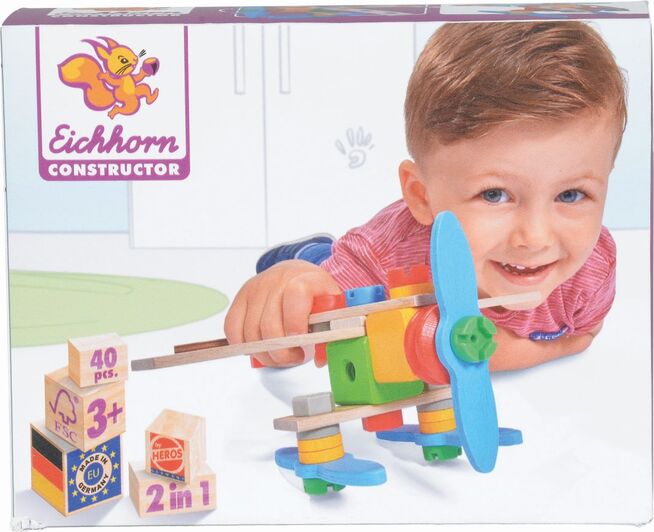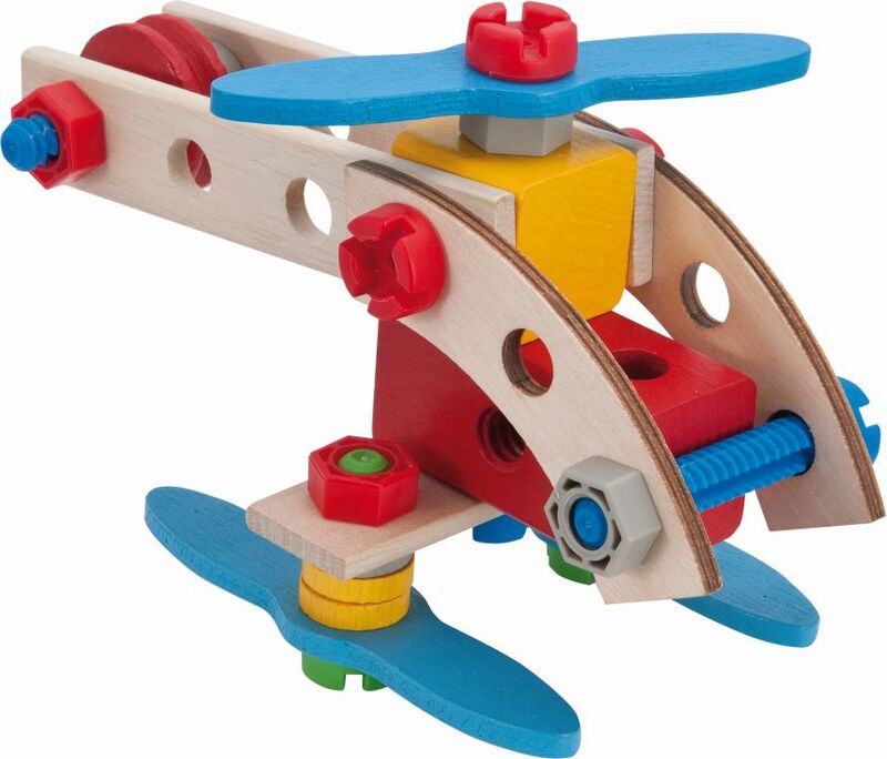 Drevená stavebnica, z ktorej je možné zostaviť 2 modely: lietadlo alebo helikoptéru.