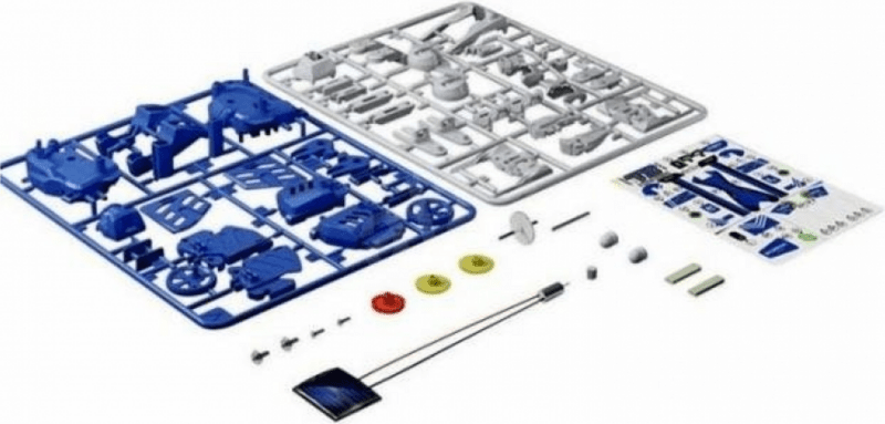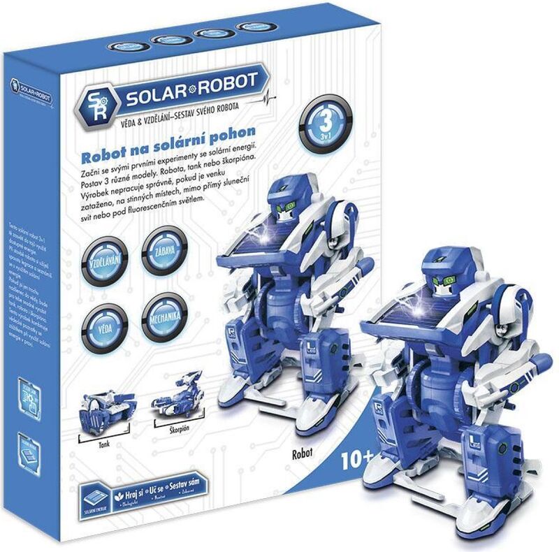 Robota v modrom prevedení si môžu chlapci zostaviť až v troch variantoch a hrať sa s ním bez použitia batérií. Obsahuje solárny pohon, dá sa ľahko dobiť pod umelým svetlom či priamym slnečným svitom.