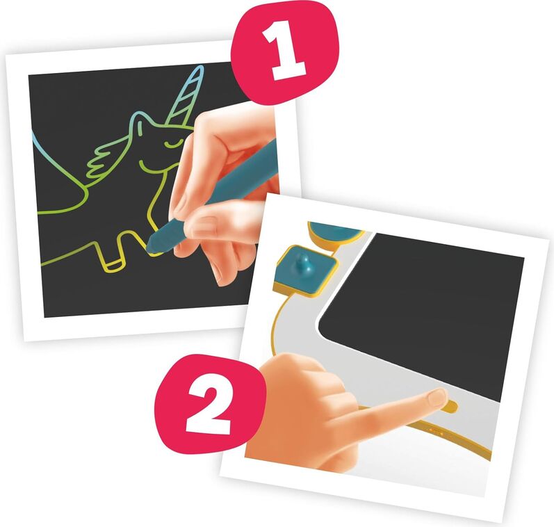 Podporte detskú kreativitu bez neporiadku! Viacfarebný LCD tablet od BUKI je navrhnutý pre batoľatá a malé deti — píšu, kreslia, pečiatkujú a potom jedným tlačidlom vymažú a začnú znova. Ideálne na cestovanie, čakanie v reštaurácii aj na každodenné hravé učenie.