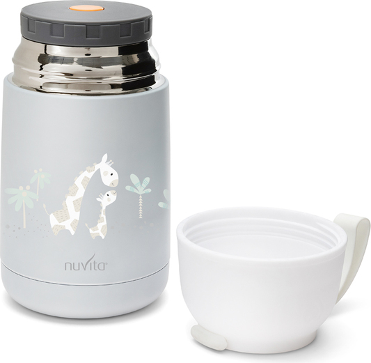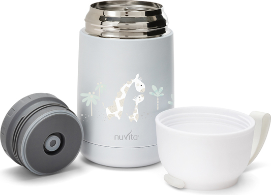 Polievky, príkrmy či domáce výživy – termoska NUVITA vám umožní bezpečný prenos nápojov a potravín. Odolná konštrukcia s dvojitými nerezovými stenami zaisťuje uchovanie stálej teploty po dobu niekoľkých hodín. Multifunkčný kelímok môže byť použitý ako hrnček na pitie. Samozrejmosťou je široké hrdlo na pohodlné nalievanie a čistenie. Praktické silikónové putko vám umožní termosku pohodlne pripnúť k batohu či kočíku.