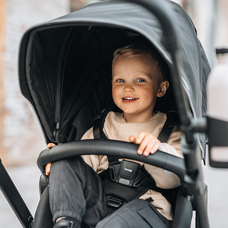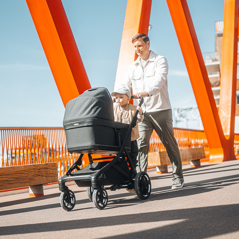 Thule Sleek 2 je kompletným cestovným riešením od prvého dňa. Pre pohodlie novorodenca ho možno používať s detskou autosedačkou alebo s hlbokou vaničkou Thule, a neskôr ho možno s rastom dieťaťa prepnúť na priestrannú obojstrannú detskú sedačku. Sedačku možno sklopiť do troch polôh a má nastaviteľnú opierku nôh pre lepšie držanie tela a odpočinok počas ciest.