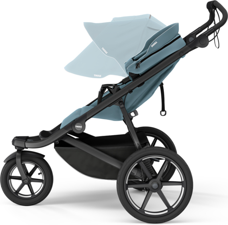 Pripravené od prvého dňa - je možné použiť od narodenia s vaničkou Thule alebo adaptérom na detskú autosedačku (predáva sa samostatne). Látku sedadla a striešky je možné odstrániť pre čistý vzhľad.