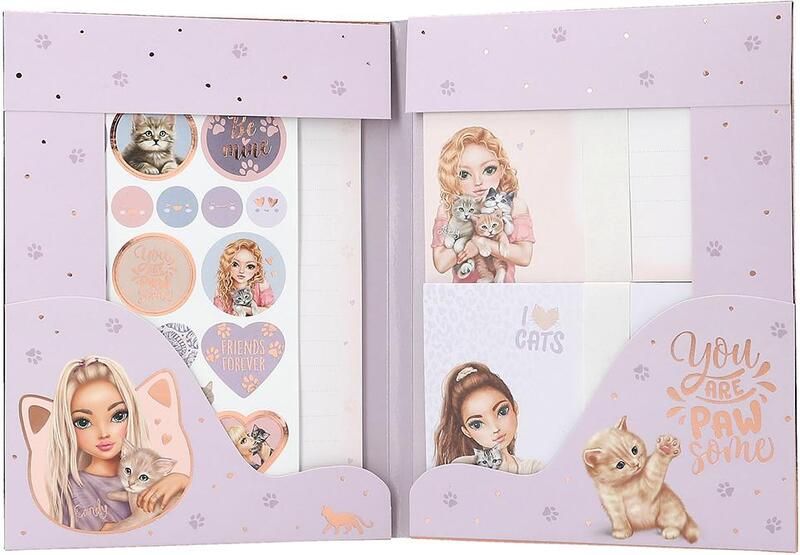 Sada obsahuje všetko, čo potrebujete na písanie a zdobenie listov - nájdete v nej 12 listov papiera na listy v dvoch motívoch, 6 vhodných obálok a viac ako 80 štýlových samolepiek s motívmi mačiatok, srdiečok a postavičiek z Topmodelky. Pomocou nich si deti môžu kreatívne ozdobiť svoje listy a obálky.