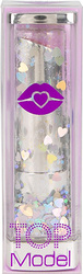Rúž je doplnený o pohyblivé trblietavé srdiečka.