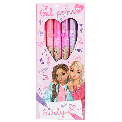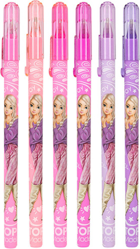 Sada obsahuje 6 ks atraktívnych gélových guličkových pier s klipom a silnejším hrotom. Perá vo vycibrenom dizajne jedinečnej značky Top Model sú nielen praktickou písacou potrebou, ale aj exkluzívny štýlový doplnok.