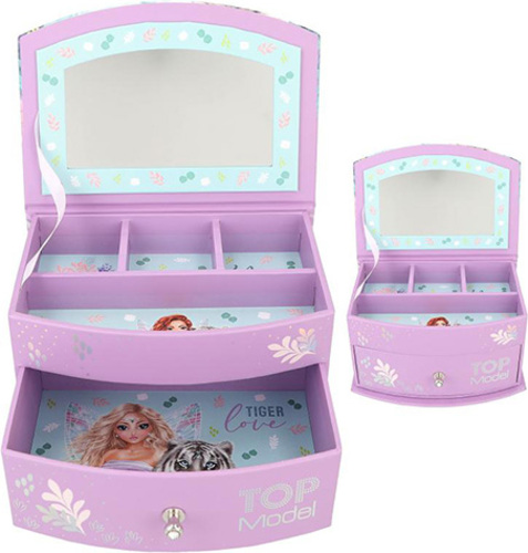 Kvalitne spracovaná dievčenská šperkovnica značky Top Model vyrobená z pevného kartónu so zrkadielkom.Šperkovnica ponúka dostatočný vnútorný priestor na prehľadné uloženie všetkých šperkov!