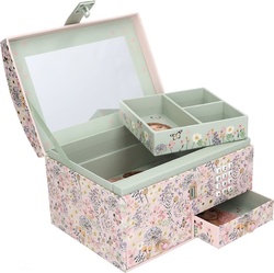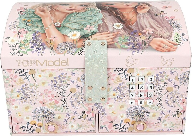 Kvalitne spracovaná dievčenská šperkovnica značky Top Model, vyrobená z pevného kartónu so zrkadielkom a elektronickým zámkom. Pri otvorení tajným kódom zahrá hit Shivers.Šperkovnica ponúka veľký vnútorný priestor pre prehľadné uloženie všetkých šperkov! Horné poschodie je rozdelené odnímateľnou priehradkou pre uloženie prstienkov a náušníc. Spodné vnútorné zásuvky sú ideálne na menšie šperky. Obľúbený dizajn nadchne všetky dievčatá!