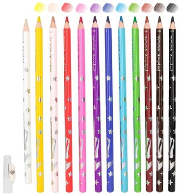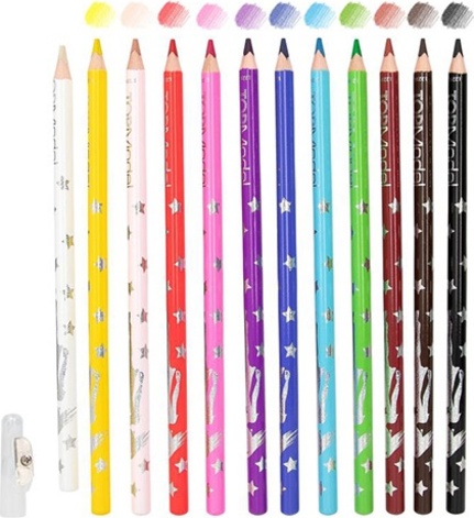 Nádherné farebné pastelky sa dobre orezávajú a ľahko sa s nimi kreslia a vyfarbujú. Pastelky v atraktívnom dizajne mimoriadne obľúbenej značky Top Model nájdu kreatívne využitie v škole aj doma!Súčasťou balenia je 12 rôznych farieb pasteliek, strúhadlo a dizajnové tipy pre správne vyfarbenie.