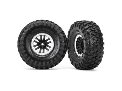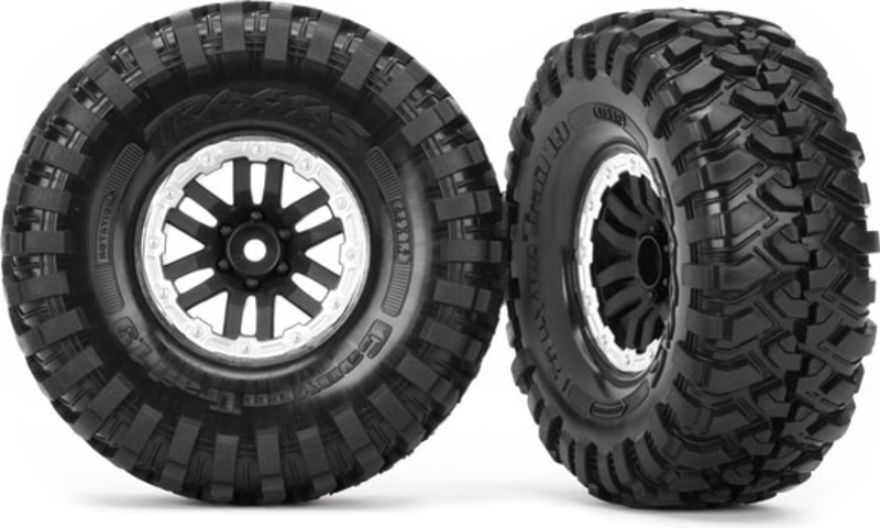 Kompletné univerzálne kolesá pre RC modely áut TRX-4. Čierne Disky TRX-4 Sport so striebornými ráfikmi a pneumatikami Canyon Trail (2 ks v balení).