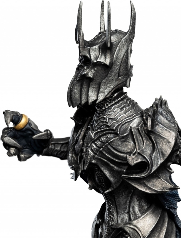 Digitálne vytesaná sochárom Maurom Santinim, táto figúrka svojou EPIC veľkosťou dominuje nad ostatnými Mini Epic figúrkami Ľudí a Elfov – presne tak, ako Sauron vnucuje svoju zlú vôľu Stredozemi.