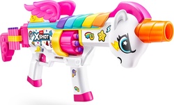 Ovládnite bojisko s magickým Blastercornom! Predstavujeme vám X-SHOT Blastercorn Series 1 Rizz - výkonný a vizuálne pútavý blaster, ktorý do vašej hry vnáša prvok fantázie a kúzla. Vďaka svojmu unikátnemu dizajnu s motívom jednorožca, osvetleným rohom a mávajúcimi krídlami prináša na ihrisko explóziu farieb a vzrušenia.