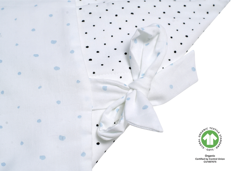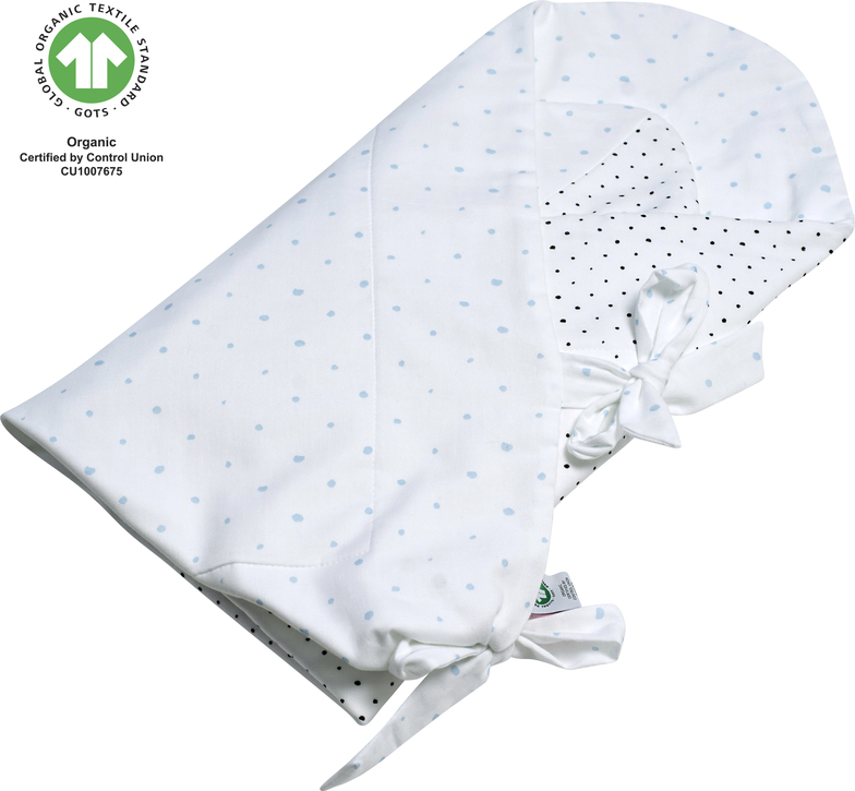 - Zavinovačka je ušitá z troch vrstiev organického mušelínu najvyššej kvality s ekologickým certifikátom GOTS, zaisťuje perfektnú cirkuláciu vzduchu a tepelný komfort v letnom a jarnom období.