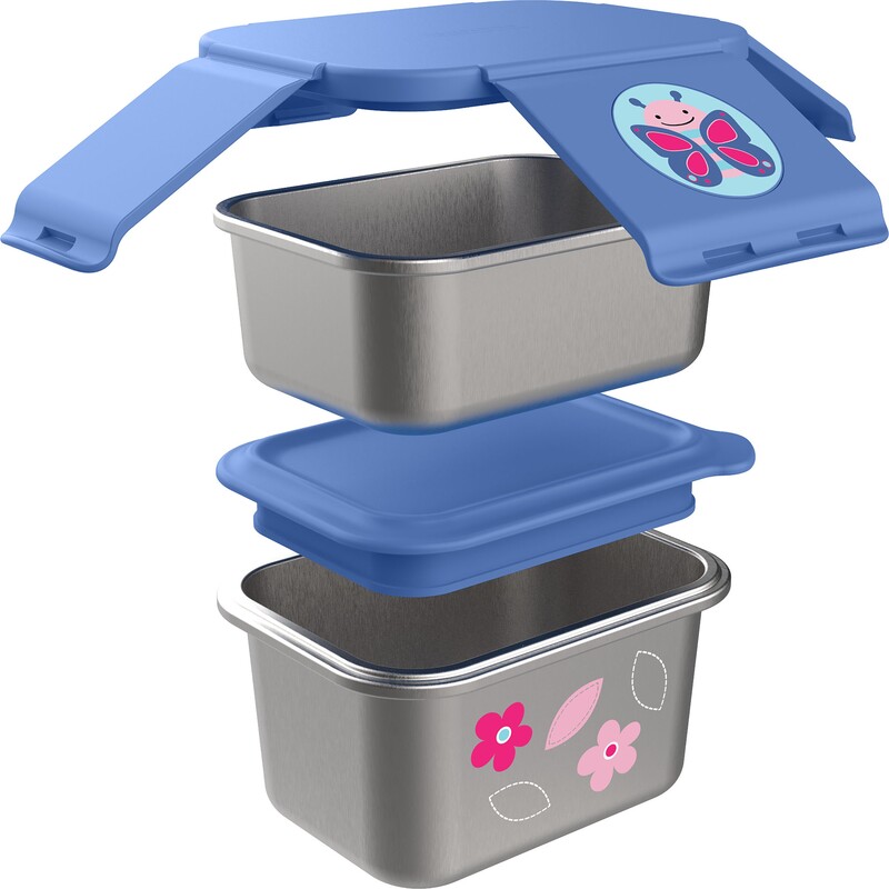 • Súprava určená na stohovanie a uzamykanie spolu obsahuje jednu veľkú a jednu malú nádobu so zabezpečenými viečkami pre pohodlie na cestách.